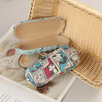 Estuche de anteojos verde con diseño de dibujos animados portátil y a prueba de golpes E88 Estuche elegante de cuero PU de alta calidad para gafas en stock